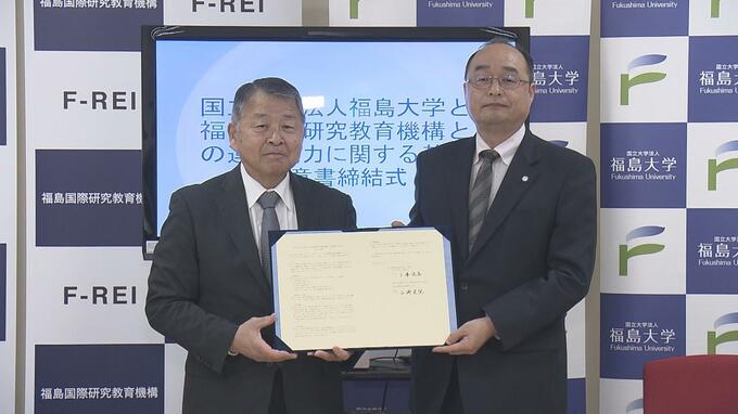 福島大学と福島国際研究教育機構F-REIが研究開発などで連携する協定を結びました。締結式では、福島大学の三浦浩喜学長とF-REIの山崎光悦理事長が協定を取り交わしました。福島大学・三浦浩喜学長「世界に冠たる…