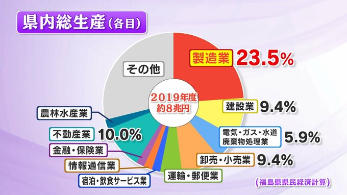 また、県内の生産額全体に占める製造業の割合は、およそ4分の1で、製造業は福島県の重要な基幹産業でもあります。