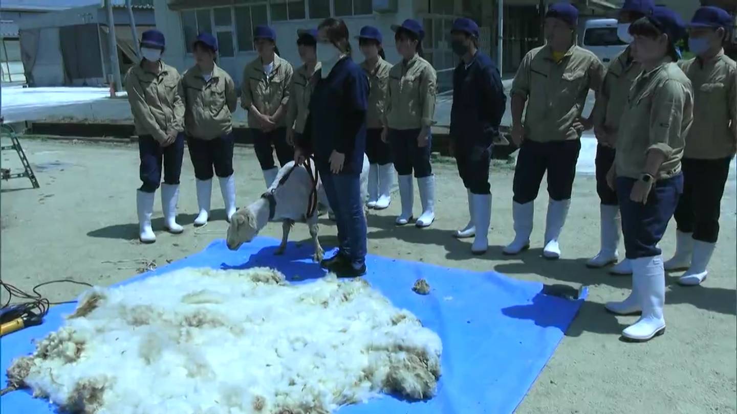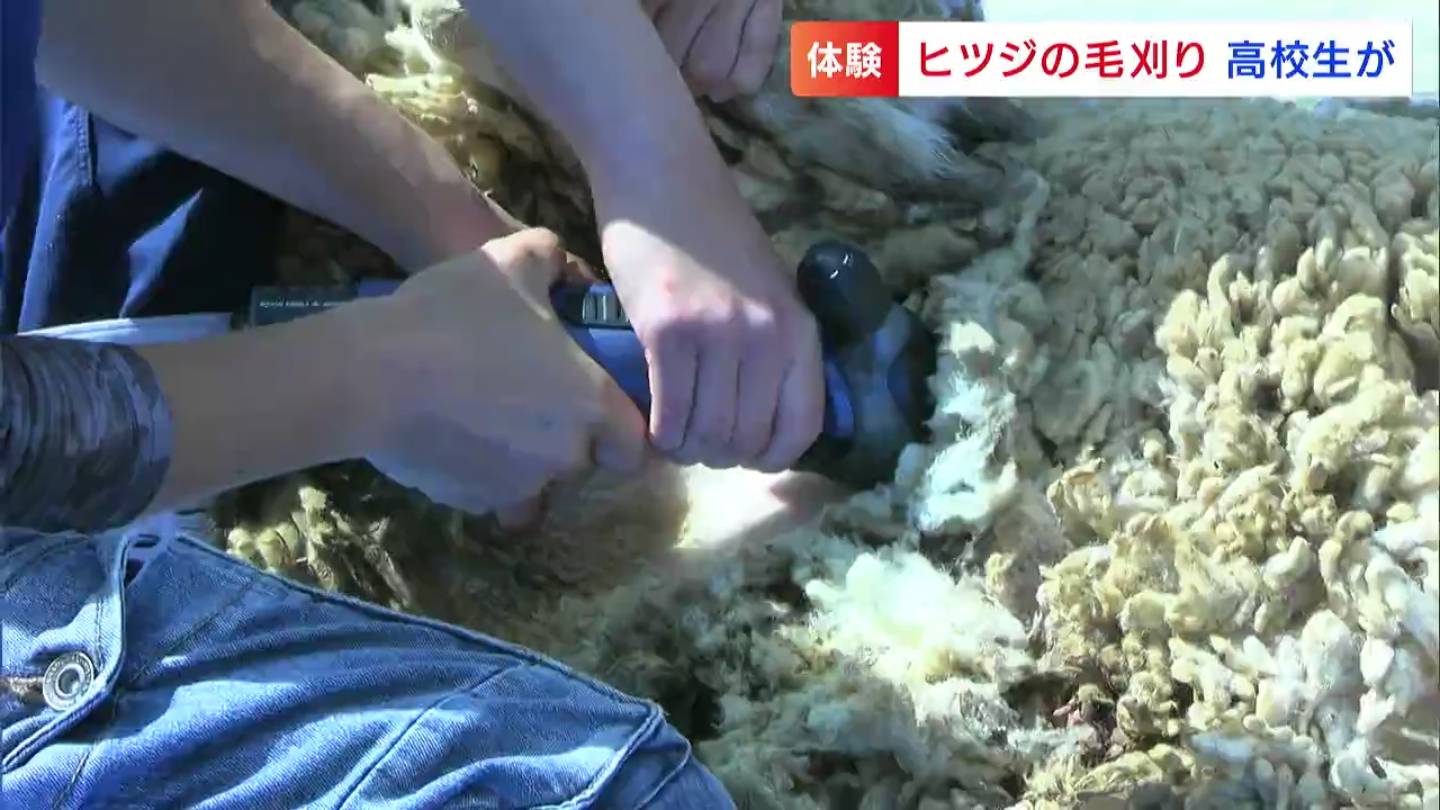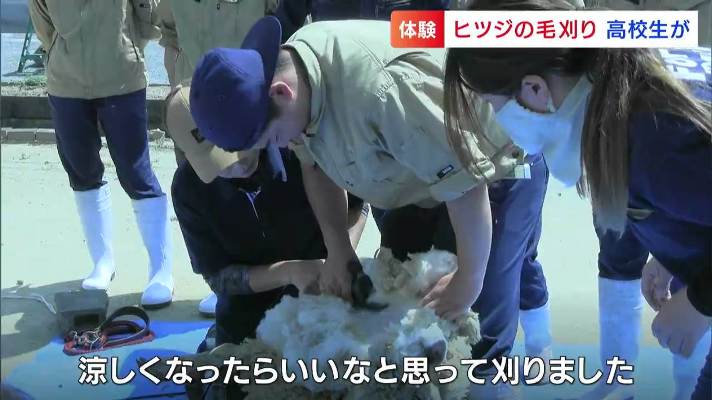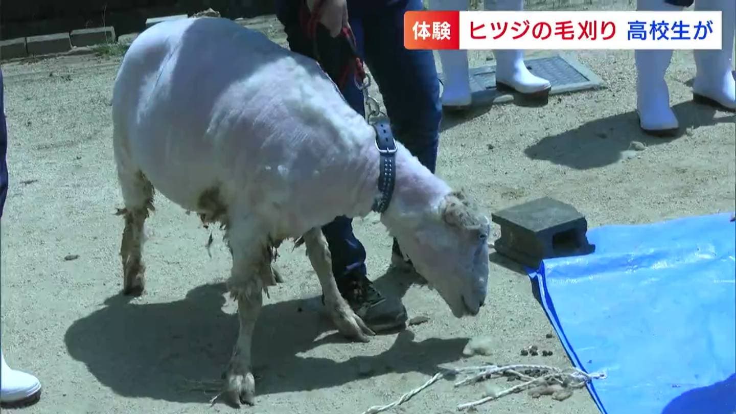 岡山市東区の瀬戸南高校の生徒が、授業の一環で毛刈りを体験しました。