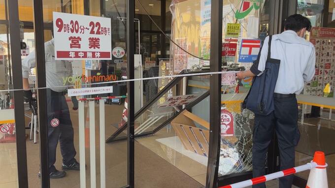 17日、福島県郡山市内のスーパーで90代男性が運転する軽乗用車が車2台にぶつかった後、スーパーの出入り口に衝突する事故がありました。けが人はいませんでした。出入り口のガラスは割れ…自動扉を支える柱は曲が…