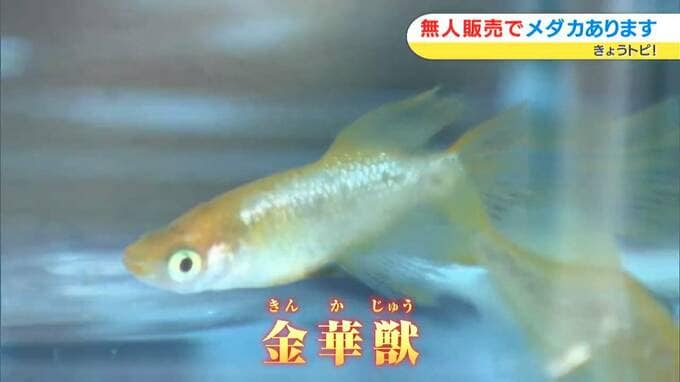 こちら、「金華獣(きんかじゅう)」といいます。横から見て楽しめるメダカなんですけど、ヒレが長くて黄色で(【画像】参照)。