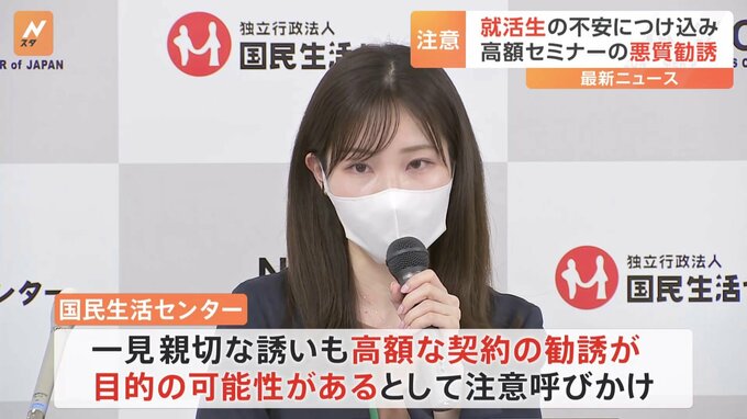 就職活動中の学生の不安につけ込み、高額なセミナーなどを契約させるトラブルが相次いでいるとして、国民生活センターが注意を呼びかけました。SNSを活用して就活に関する情報を集める学生が増える中、全国の消費…