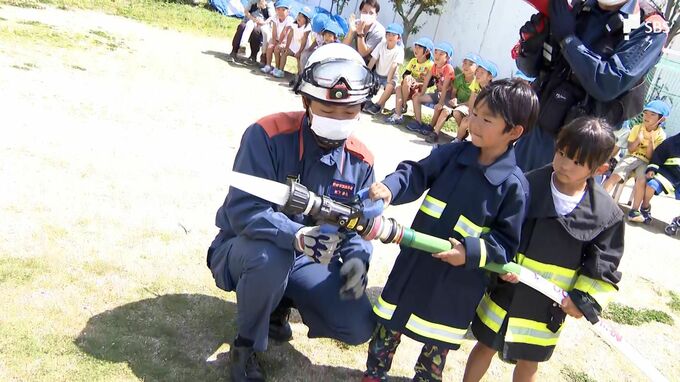 花火を楽しむシーズンを前に、静岡県磐田市では園児に正しい火の取り扱いなどについて学んでもらう消防体験が5月17日行われました。17日、消防体験に参加したのは磐田市内の園児約60人です。このイベントは消防の…