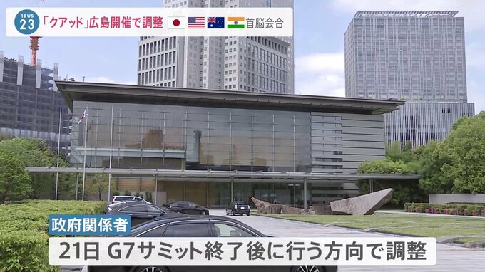日本、アメリカ、オーストラリア、インドの4か国による枠組み「クアッド」の首脳会合が、21日に広島で行われる方向で調整が進んでいることがわかりました。クアッド4か国の首脳による会合は、当初、G7広島サミット…