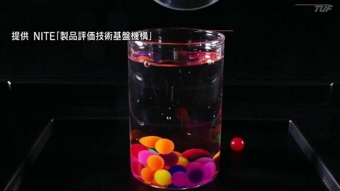NITE「製品評価技術基盤機構」が行った実験の動画です。水の中に入れたボールが大きくなっていきます。