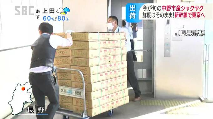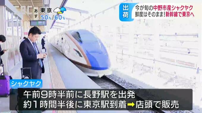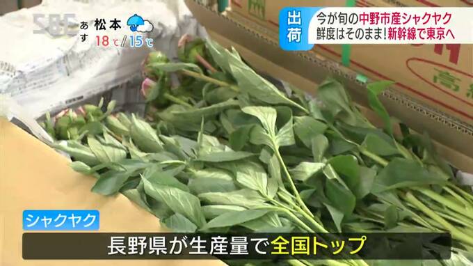 午前9時半前に長野駅を出発した新幹線は、およそ1時間半で東京駅に到着し、午後、シャクヤクが店頭に並びました。