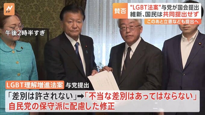 性的マイノリティへの理解を促す「LGBT理解増進法案」をめぐって、自民党と公明党は与党案を国会に提出しました。与党が国会に提出した法案は、当初案にあった「差別は許されない」という文言が「不当な差別はあっ…
