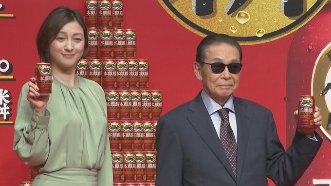 広末さんは、“私がCMに出てから、地元の高知県に帰ると、みんな「キリンしか飲まん!」となっていて。そしたらキリンビールから、「高知県が全国で売り上げNo.1になった」と連絡がきたんです!”と、衝撃のエピソードを披露。江口さんが、“どんだけ知り合い多いの”と驚嘆するなど盛り上がっていました。トークで温まった会場に、満を持して呼び込まれたタモリさんは、この日一番の拍手の中、登場。「うまさだけで勝負する」という本麒麟のキャッチコピーについて、“きょうは豪華メンバーですよね。うまさだけで勝負してないですよね?”と話し、笑いを誘いました。