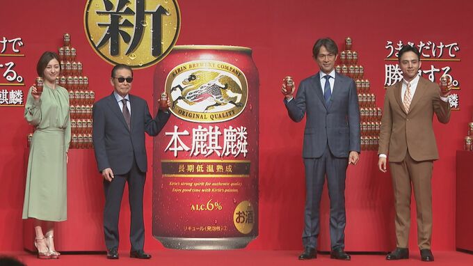 キリンビール株式会社が、「本麒麟」のリニューアル発表会&新TVCM発表会を行い、CMに出演するタモリさん、江口洋介さん、広末涼子さん、満島真之介さんが登壇しました。発表会冒頭、司会者から、“本麒麟と言えばこの方!”と呼び込まれた江口さんは、照れ笑いを浮かべながら登場。真紅のステージに、豪華なソファという「大人な雰囲気」の会場で、ダンディに本麒麟について語りました。次いで呼び込まれたのは広末さんと満島さん。司会が、“このお三方が揃うなんて豪華。キリンの本気を感じる”と話すと、江口さんは、“本麒麟だけにね”と、まさかのダジャレ。