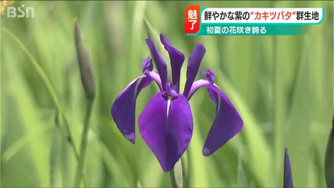 初夏の訪れを告げる「カキツバタ」が見ごろを迎えています。暑さを吹き飛ばしてくれる鮮やかな紫の花が山あいの地を彩っています。