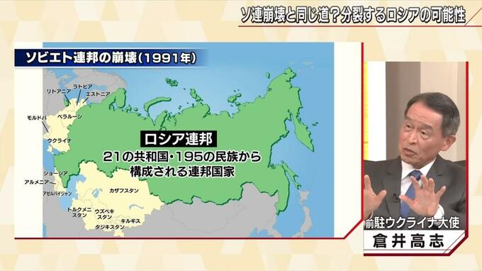 「そもそもロシア連邦っていうのは、ロシア民族やロシア正教の割合が圧倒的と言いながらも多民族で多宗教国家。さらに今のロシア連邦の国境線沿いに限定される国家統合の要素は厳密にいうと無いんです。ですから強い指導者が必要になってくる。だからプーチン氏の指導力、統率力が弱まってくると分離主義的傾向が強まる」