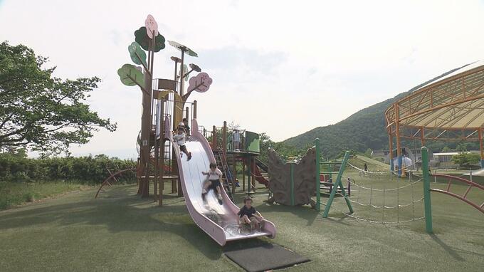 植野天斗記者「公園にあるこちらのすべり台、金属でできているんですけれども、表面は素手では長時間触っていられないくらい熱くなっています」