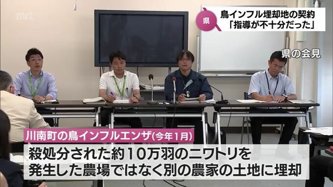 今年1月、川南町の養鶏場で発生した鳥インフルエンザで、宮崎県は、処分したニワトリの埋却地について、所有者との契約に関する指導が不十分だったと発表しました。県によりますと、今年1月、川南町の養鶏場で鳥イ…