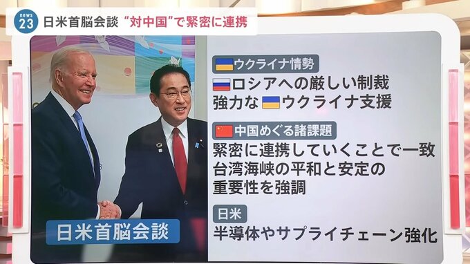 1時間10分にわたって行われた岸田総理とバイデン大統領の会談。主な内容です。