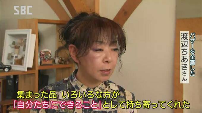 ■バザーを企画した渡辺ちあきさん 「集まった品、いろいろな方が自分たちにできることとして持ち寄ってくれた」