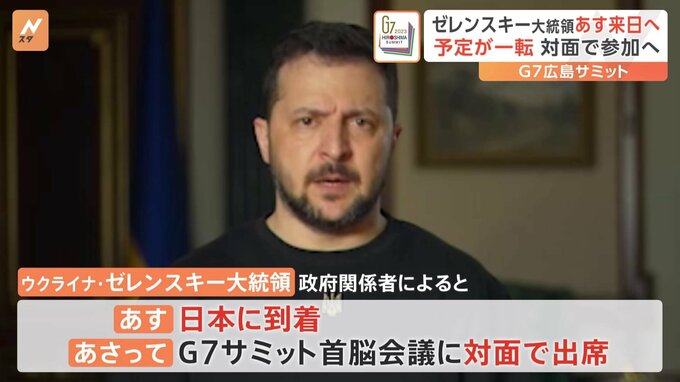 ウクライナのゼレンスキー大統領が、広島で開催中のG7サミットに対面で参加するため、あす来日することが分かりました。政府関係者によりますと、ウクライナのゼレンスキー大統領は、あす日本に到着し、あさって、G…