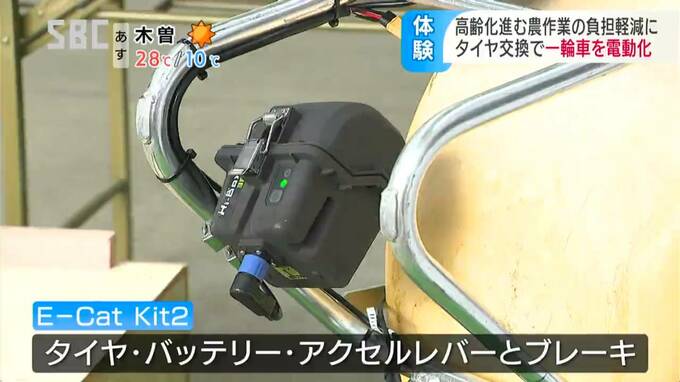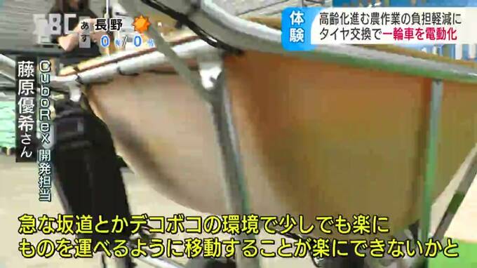 農作業の負担軽減につなげようと開発されたのは、「一輪車」を電動化できる製品。