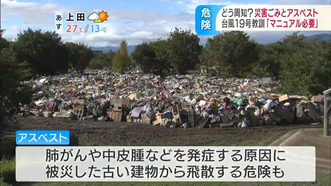 千曲川の堤防決壊で多数の家屋が全壊するなど大きな被害を受けた長沼地区では膨大な量の災害廃棄物が発生し、石綿と呼ばれる「アスベスト」への対策が問題となりました。