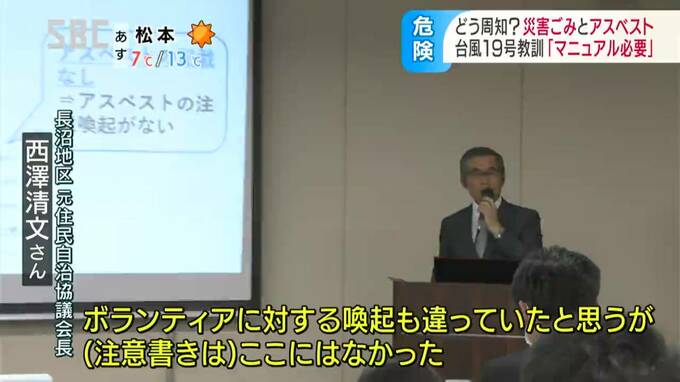 4年前の台風19号災害を教訓に、災害時の廃棄物やアスベスト対策について考える学習会が長野市で開かれました。