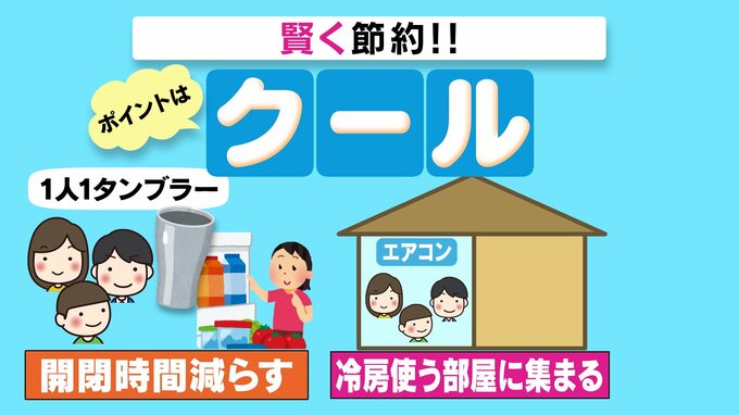 続いてのポイントは「クール」です。家庭内では1人ずつ保冷用の「タンブラー」を使うといいそうです。冷たい飲み物を探そうと、冷蔵庫を開け閉めする回数を減らすのに効果的だそうです。