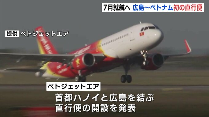 ベトナムの格安航空会社が首都ハノイと広島を直行便で結ぶ新路線を開設すると発表しました。杉木健那 記者「ベトナムのチン首相を乗せた専用機が広島空港に着陸しました」G7サミットに招待されたファム・ミン・チ…