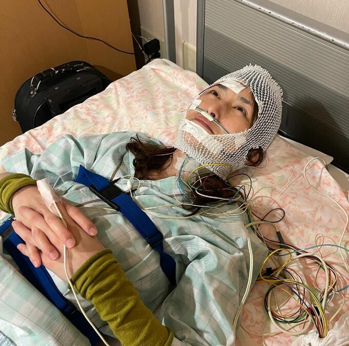 北海道出身の大食いタレント・アンジェラ佐藤さんが19日、自身のインスタグラムを更新し、ベッドの上で多数のコードにつながれ、顔の周りをネット状の包帯でおおわれている写真を投稿しました。