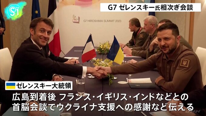 広島で開かれているG7サミットに出席するため日本を訪れたウクライナのゼレンスキー大統領は、きのうフランスやイギリスなどと相次いで首脳会談に臨みました。G7首脳会議の会場となっているホテルに到着したゼレン…