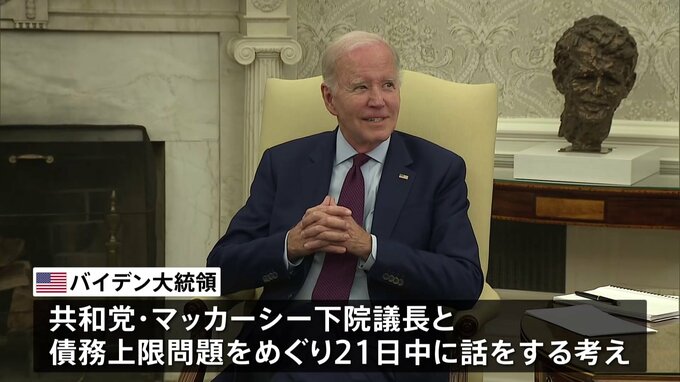 アメリカの債務上限問題をめぐるバイデン政権と野党・共和党の協議が難航する中、バイデン大統領はきょう中に共和党のマッカーシー下院議長と話をすることを明らかにしました。アメリカ バイデン大統領「きょう、…