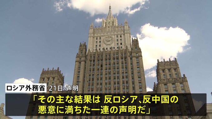 ロシア外務省はG7広島サミットについて声明を発表し、「反ロシア、反中国の悪意で満ちている」と批判しました。ロシア外務省は21日、G7広島サミットの閉幕にあわせて声明を発表し、「その主な結果は反ロシア、反中…