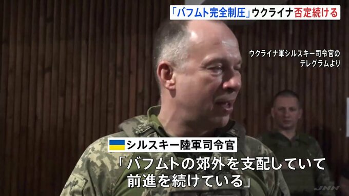 ウクライナ情勢です。ロシア側が東部の要衝バフムトについて「完全に制圧した」と発表したのに対し、ウクライナ側は否定を続けています。ウクライナ陸軍のシルスキー司令官は21日、東部バフムトで兵士を激励する様…