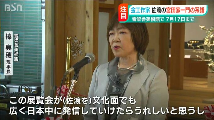【雪梁舎美術館 捧実穂 理事長】「この展覧会が(佐渡を)文化面でも広く日本中に発信していけたらうれしいと思うし、佐渡の伝統工芸、この金属芸術が末永く続いていくことを願う」