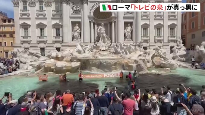 イタリア・ローマの観光名所「トレビの泉」が一時、真っ黒になる騒ぎがありました。世界的な観光名所「トレビの泉」。水の色が黒く染まっていきます。気候変動対策を訴えるイタリアの過激な環境保護団体の活動家が…