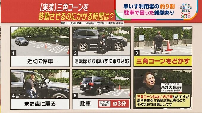 森井選手の場合、コーンをどかして駐車するまでにかかった時間は約3分間でした。
