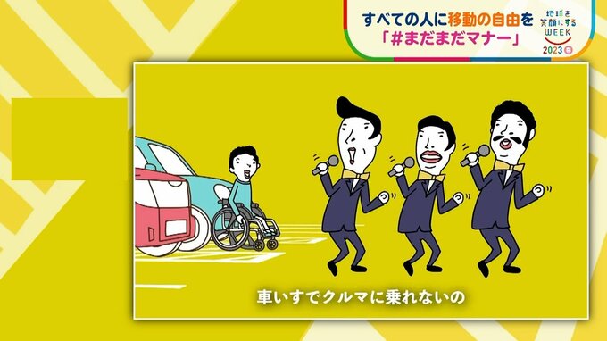 「まだまだ知られてないマナー」として、ゼブラゾーンへのはみ出しや、車いすマークの駐車場に三角コーンを置くことでの困りごとを、アニメと歌で紹介しています。この動画を作ったトヨタ自動車の社員は、歌を作ったきっかけについてー