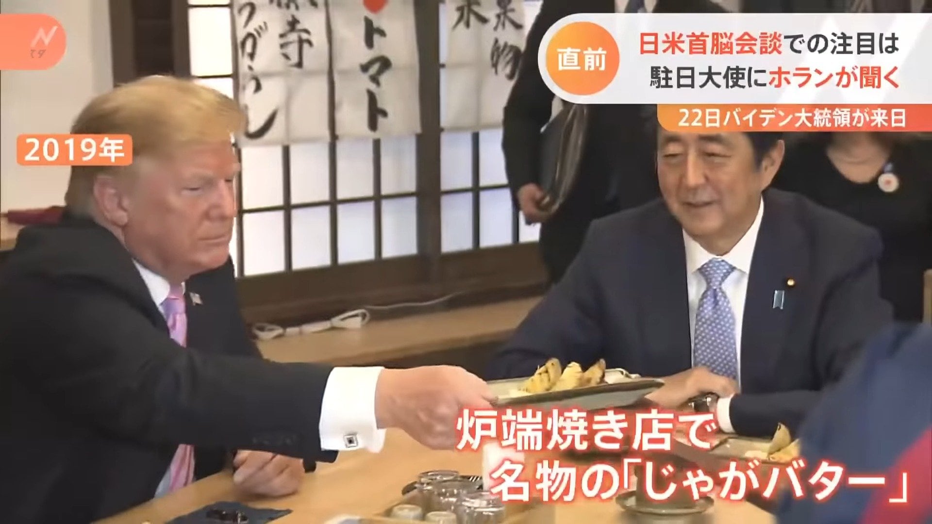 2019年に来日したトランプ氏は、晴れ渡った空の下ゴルフを楽しみ、さらに夜には、都内の炉端焼き店で名物の「じゃがバター」を楽しむなど、日本側の「おもてなし」が注目されます。