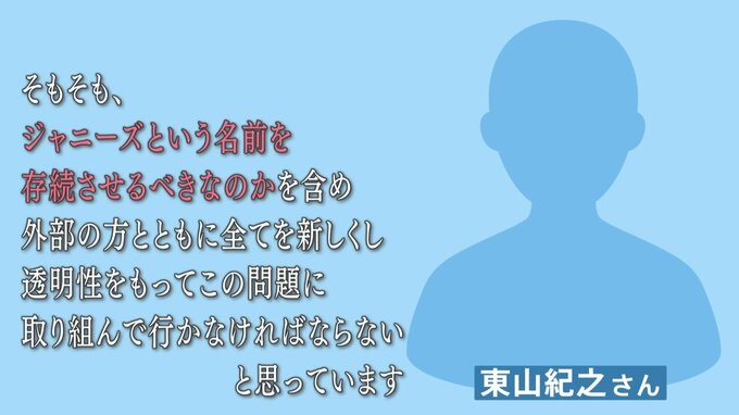 「そもそも、ジャニーズという名前を存続させるべきなのかを含め、外部の方とともに全てを新しくし、透明性をもってこの問題に取り組んでいかなければならないと思っています」