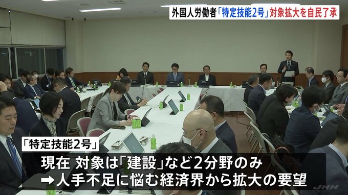 幅広い外国人労働者に永住への道を開きます。在留期間の更新に制限のない「特定技能2号」の対象を農業・宿泊・外食など11の分野に拡大する案が自民党の会合で了承されました。自民党 塩谷立雇用問題調査会長「よ…