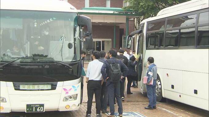 水津邦治アナウンサー「午前9時35分、視察団とみられるバスが廃炉資料館に到着しました」