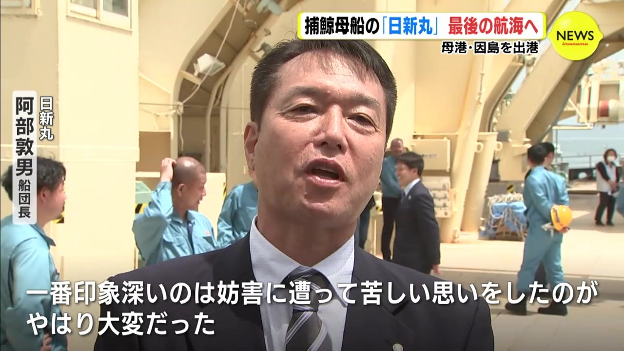 廃船が決まっている日本唯一の捕鯨母船が、最後の航海に向けて広島県尾道市を出港しました。