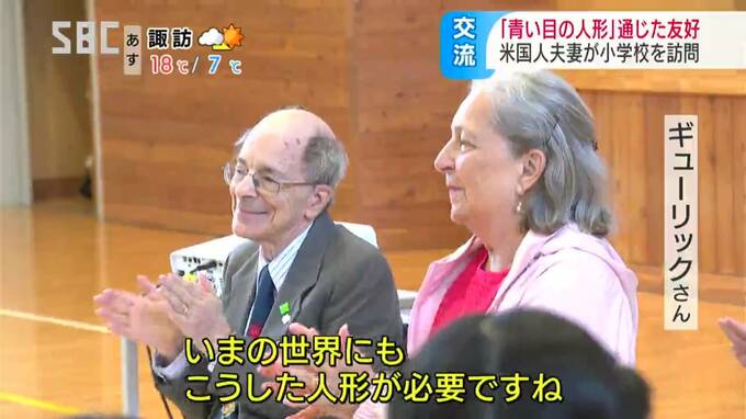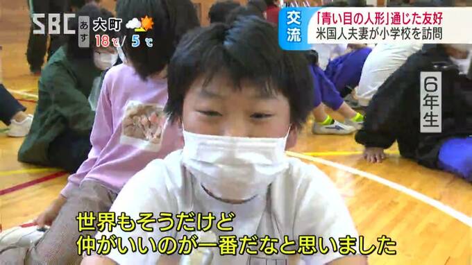 日米友好のため、人形を贈る活動を続けてきたアメリカ人の夫妻が、長野市の小学校を訪れて子どもたちと交流しました。