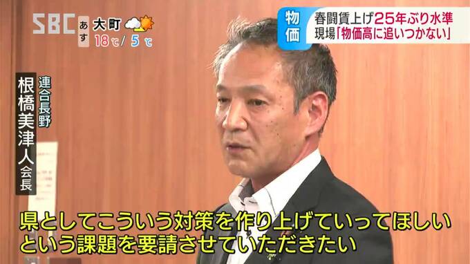 長野県内の今年の春闘の賃上げ状況が発表され、これまでに妥結した77組合の平均妥結額が25年ぶりに7000円を超えました。