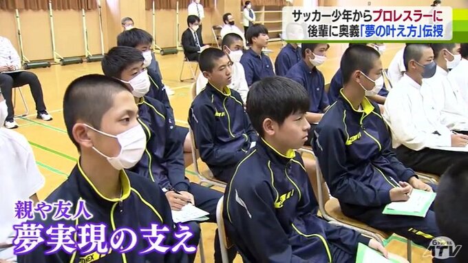 実は山谷選手は高校までサッカー少年。厳しい部内競争で結果が残せなかった時期に父と訪れたのがプロレスでした。その中で、山谷選手は新たな道を目指す時に親や中学時代の友人が支えになったと話しました。