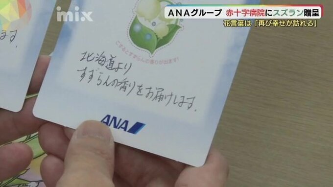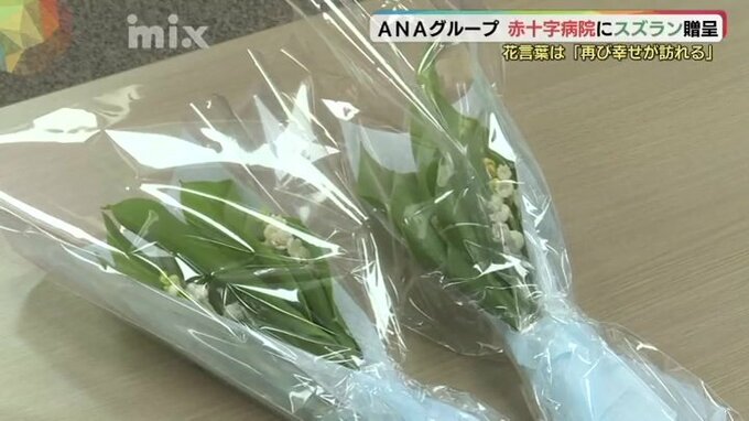 ANAグループでは山口赤十字病院など、全国51か所の赤十字病院と、関連施設にスズランの花としおりを届けました。