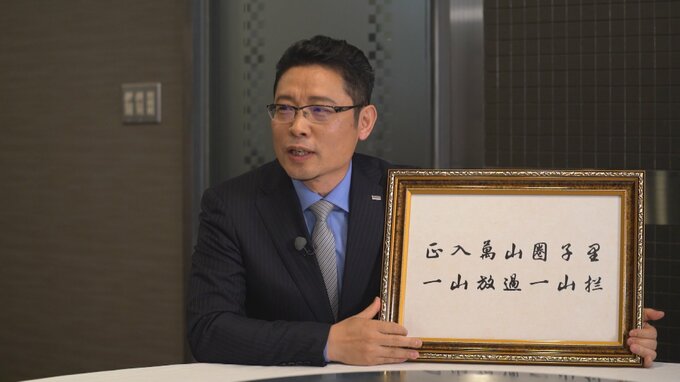 中国の宋時代の有名な詩人が書いた詩です。意味は、「山脈の中、目の前の山を登って制覇しても、また次にもっと高い難しい山が現れる」という詩です。創業精神を忘れずに、再び困難や問題に直面しても、勇気を出して次の目標に挑戦しようということですね。三洋電機とハイアールのプロジェクトを進めるのは簡単なことではありませんでしたが、両社の力を合わせて、消費者により良い製品を提供できるようになったと思っています。