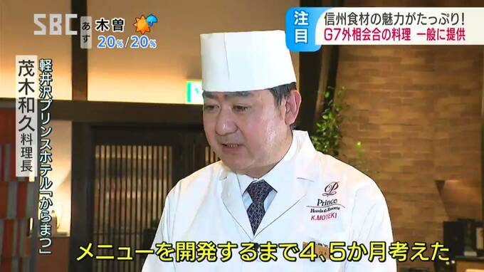 ■茂木和久料理長「海外の方を迎えるということで、味付けなどもあるが 一番最初に『信州のものを沢山召し上がっていただきたい』という気持ちで メニューを開発するまで4、5か月考えた」