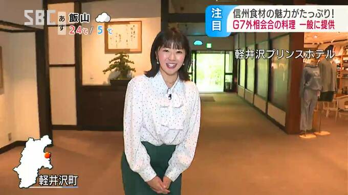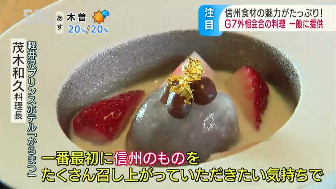 ■古畑キャスター「先日の広島サミットもそうでしたが、G7の会合では、振舞われた料理も注目されています。先月、外相会合が開かれたプリンスホテルはその料理を一般に提供することで、さらに軽井沢をアピールできると考えています」
