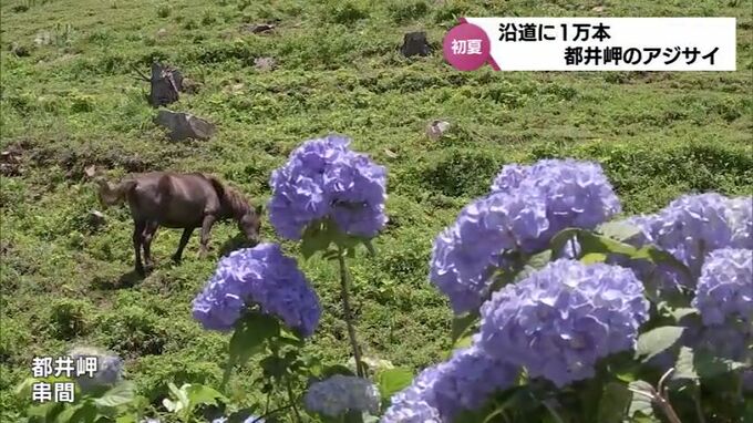 宮崎県串間市の都井岬では、沿道に植えられたアジサイが色づき始め、観光客の目を楽しませています。都井岬の県道沿いには、地元の人たちによっておよそ1万本のアジサイが植えられ、「アジサイロード」と名づけら…