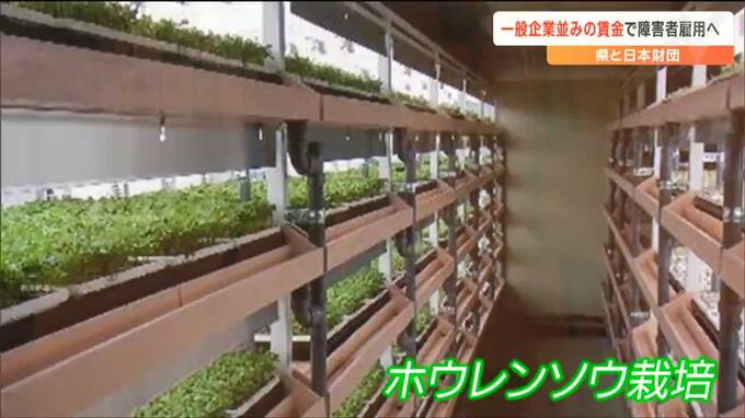 今年度はモデル事業として、県内の社会福祉法人が障害者就労支援事業所を廃止し、障害者20人を新たに立ち上げる美里町の植物工場で雇います。工場ではホウレンソウの栽培を行い、建物の整備費用を日本財団が、運営費を県が支援します。