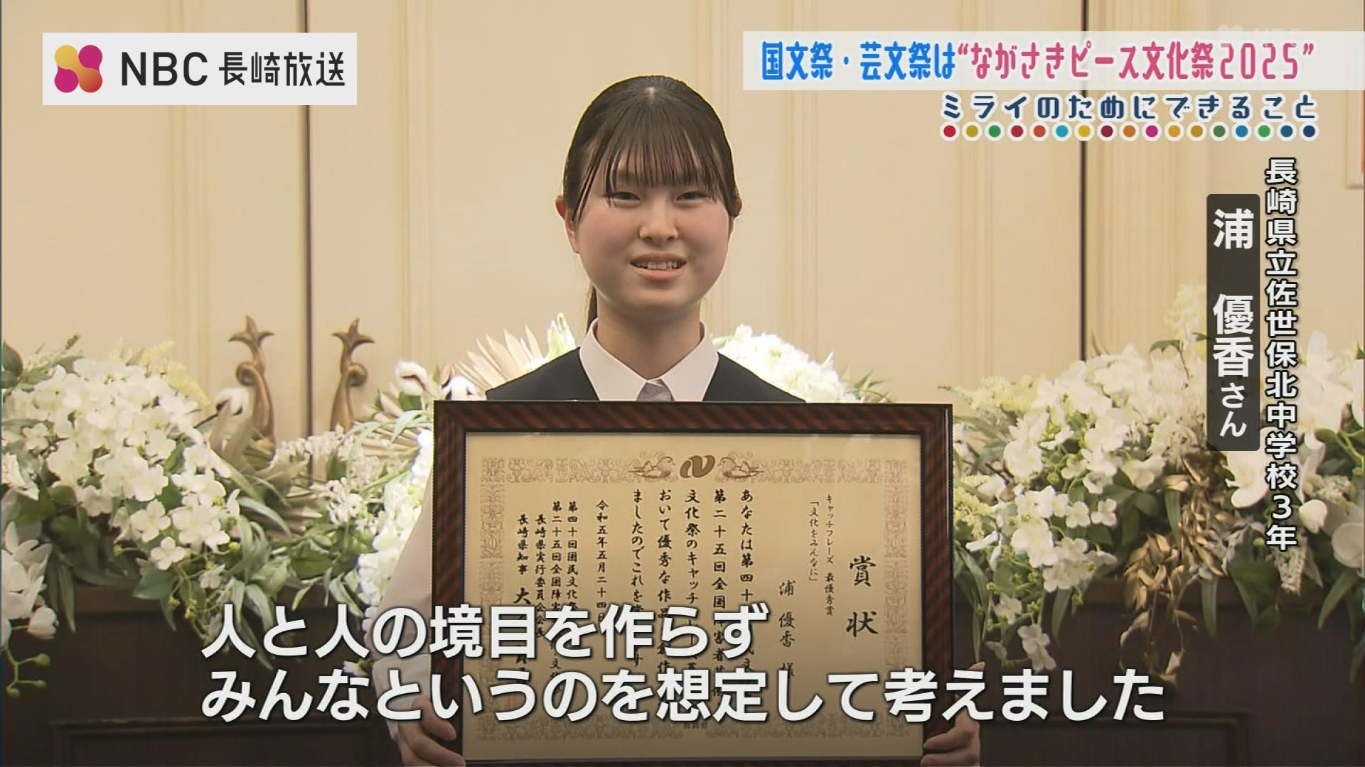 このうち愛称には、佐世保市の小学6年生 塚原 優里菜さんの「ながさきピース文化祭2025」が選ばれました。被爆80年の平和への思いが込められています。