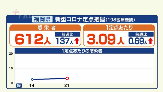 新型コロナウイルスに関する最新情報です。福岡県内で先週1週間に、指定された医療機関から報告された感染者は、1医療機関あたり3.09人で、前の週の1.29倍に増えています。福岡県の発表によると、今月1…